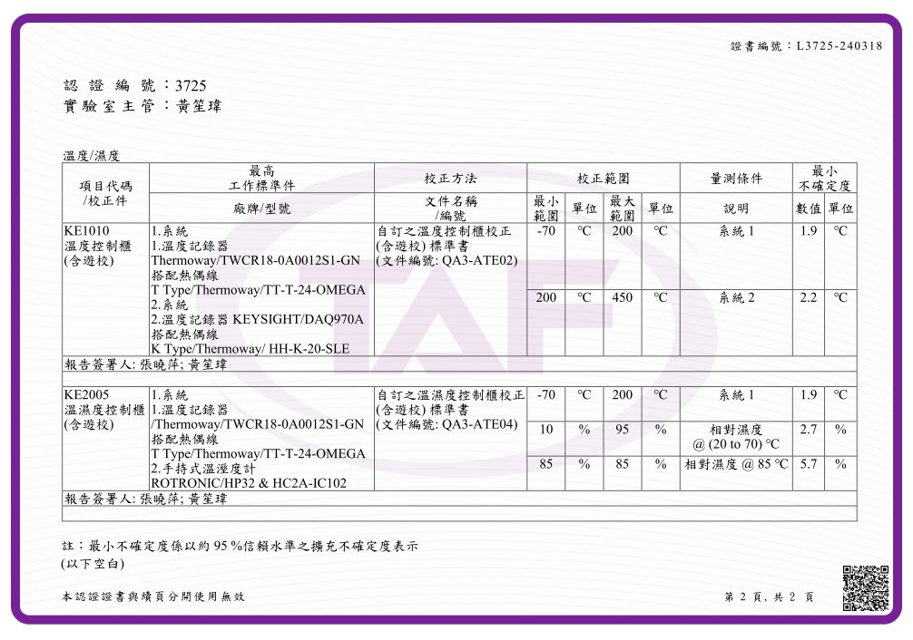 自訂之溫度控制櫃校正 (含遊校) 標準書 (文件編號:QA3-ATE02) |